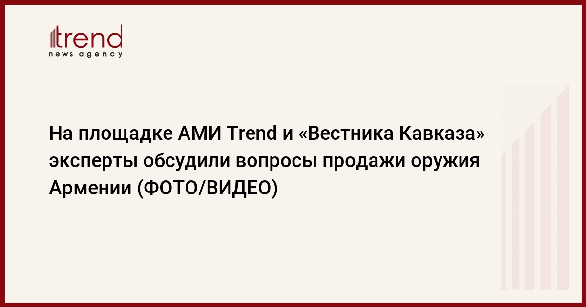 БАКУ /Trend/ - В рамках информационно-аналитической программы "Война и мир", которая является совместным проектом АМИ Trend и «Вестника Кавказа», азербайджанские и российские эксперты поговорили о том, кому выгодно продавать оружие Армении и на каких условиях это происходит.