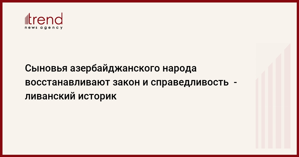 БАКУ /Trend/ - Освобождая свои территории, сыновья азербайджанского народа восстанавливают закон и справедливость. Об этом сказал Trend известный ливанский историк Али Бекраки.