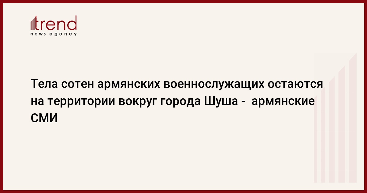 БАКУ /Trend/ - Тела 150 армянских военнослужащих, погибших в боях, которые шли вокруг Шуши, вывезены с территории, сообщает в понедельник Trend.со ссылкой на армянские СМИ.