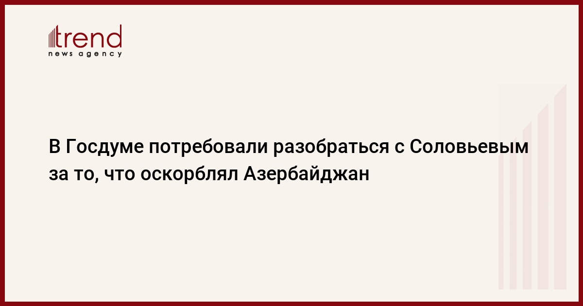 "Поэтому, как настаивает автор обращения, столь безапелляционные выпады против Азербайджана, которые на протяжении нескольких последних недель позволял себе телеведущий Соловьев и приглашенные им в эфир политики и общественники, являются непозволительными и оскорбительными для значительной части телезрителей", - продолжает Плетнева. В обращении указано, что "такой подход телеведущего может быть расценен определенной частью граждан как официальная позиция российского правительства и нарушить межнациональное и конфессиональное согласие в стране".
