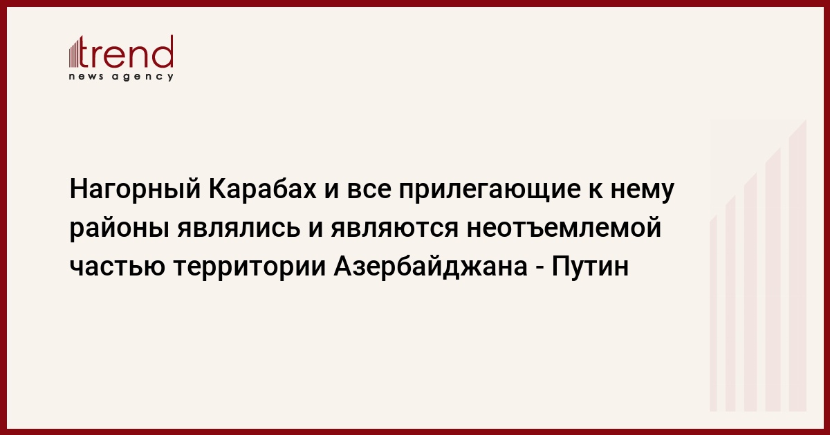 "Армения же не признала независимость и суверенитет Нагорного Карабаха. Это означало, что, с точки зрения международного права, и Нагорный Карабах, и все прилегающие к нему районы являлись и являются неотъемлемой частью территории Азербайджанской Республики", - заявил российский лидер.