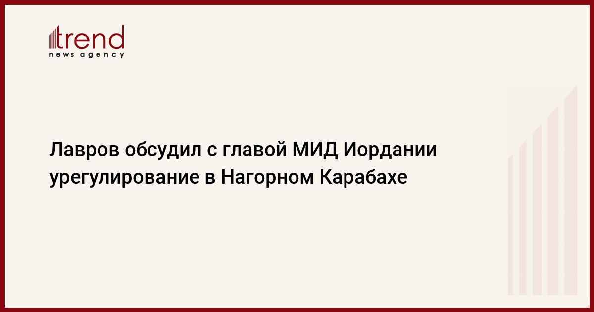 Министр иностранных дел России Сергей Лавров обсудил в понедельник по телефону с главой МИД Иордании Айманом ас-Сафади нагорнокарабахское урегулирование, с иорданской стороны была отмечена решающая роль Москвы в создании условий для прекращения огня в регионе. Об этом говорится в сообщении МИД РФ, передает Trend со ссылкой на ТАСС.