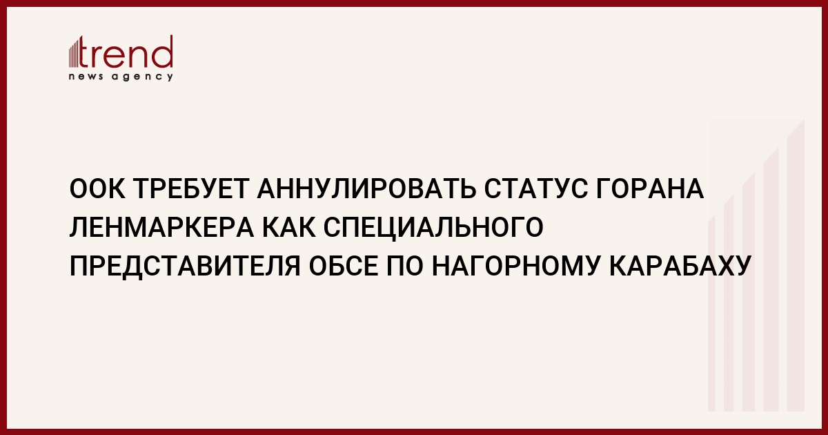 ООК считает, что представитель ОБСЕ однозначно выступил с проармянской позиции, попытался прикрыть факт армянской оккупации и терроризма. "Говорить о том, что азербайджанская сторона должна пойти на уступки, пытаться заставить забыть факт о том, что Hагорный Карабах является составной частью Азербайджана, не укладывается ни в какую логику и напрямую служит интересам оккупантской Армении. Организация освобождения Карабаха требует от Бакинского офиса ОБСЕ немедленно расследовать этот вопрос и поднять вопрос об аннулировании статуса Горана Ленмаркера как специального представителя ", - говорится в заявлении.