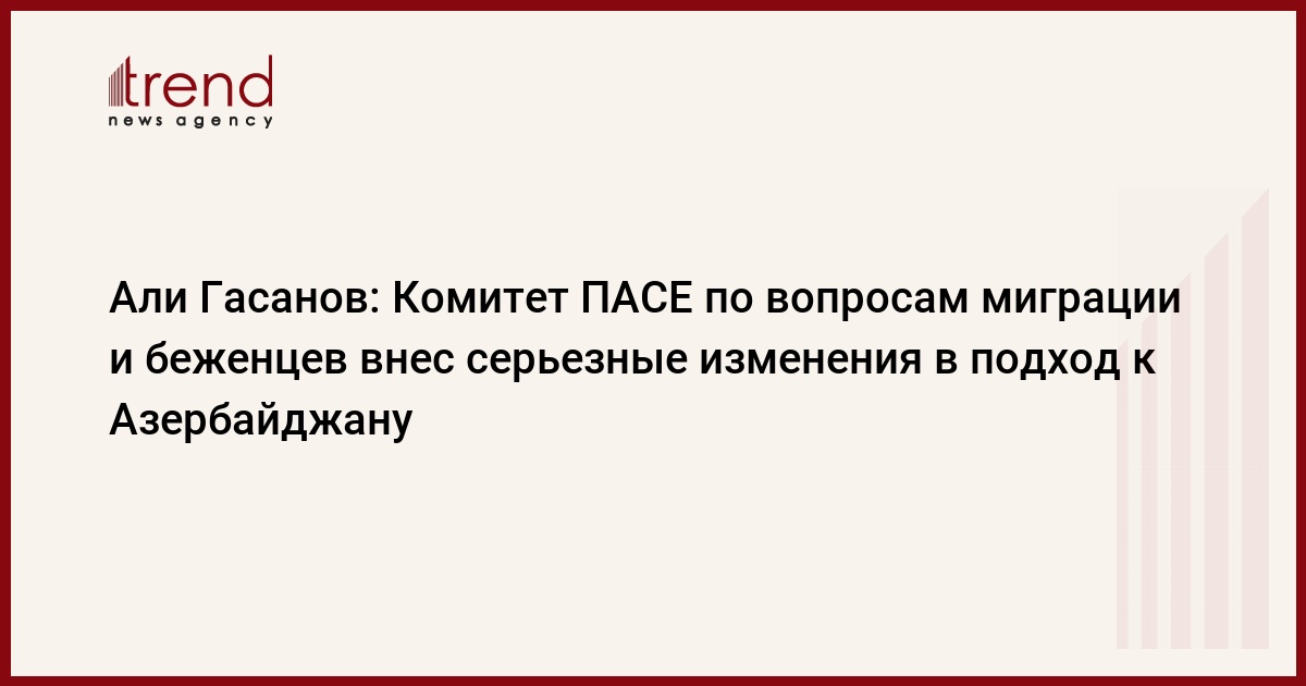 Комитет Парламентской ассамблеи Совета Европы (ПАСЕ) по вопросам миграции, беженцев и населения внес серьезные изменения в подход к Азербайджану. Об этом, как передает Trend со ссылкой на телеканал ANS, заявил вице-премьер правительства Азербайджана, председатель Госкомитета по работе с беженцами и вынужденными переселенцами Али Гасанов.