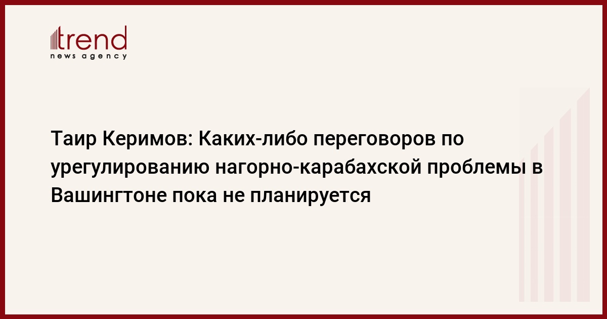 Каких-либо переговоров по урегулированию нагорно-карабахской проблемы в США в конце марта 2006 года не планируется. Об этом 24 марта сообщил Trend советник по политическим вопросам посольства Азербайджана в США Таир Керимов, комментируя возможность проведения переговоров или консультаций по разрешению армяно-азербайджанского конфликта в рамках визита главы МИД Армении Вардана Осканяна в Вашингтон.