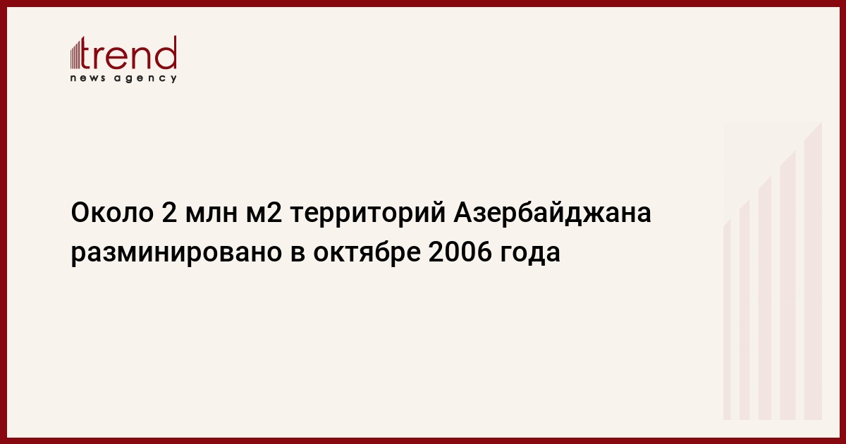 1 946 676 м2 территорий Азербайджана разминировано в октябре 2006 года. Как сообщили агентству Trend в Hациональном агентстве по разминированию территорий Азербайджана (ANAMA), за этот период было обнаружено и обезврежено 9 369 мин и невзорвавшихся боеприпасов (РHS). В очистительных операциях задействованы 22 собак-миноискателей, 138 саперов, 15 операторов РHS, 8 врачей скорой помощи и около 100 вспомогательных работников.