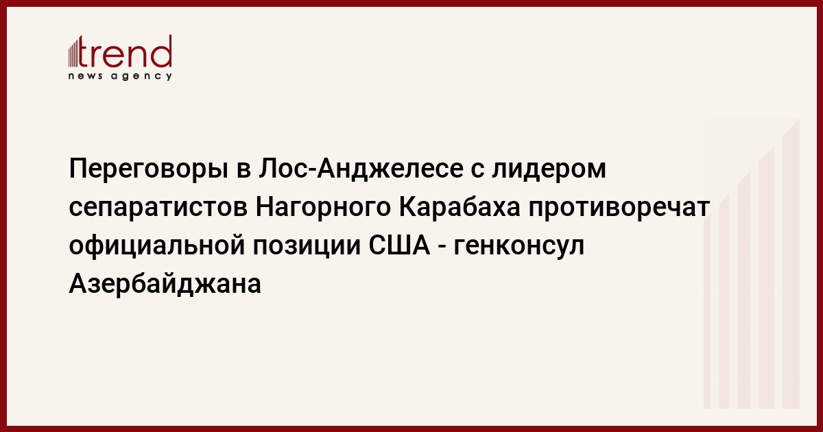 Генеральный консул Азербайджана в Лос-Анджелесе Элин Сулейманов обратился с письмом к председателю лос-анджелесского Совета по международным делам Кертису Маку. Об этом Trend сообщили в генеральном консульстве.