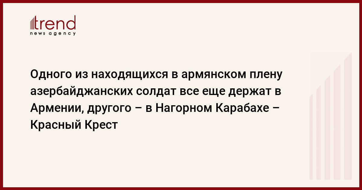 Одного из находящихся в армянском плену азербайджанских солдат все еще держат в Армении, а другого - в Нагорном Карабахе. Об этом Trend сообщила глава пресс-службы представительства Международного Комитета Красного Креста (МККК) в Азербайджане Гюльназ Гулиева.