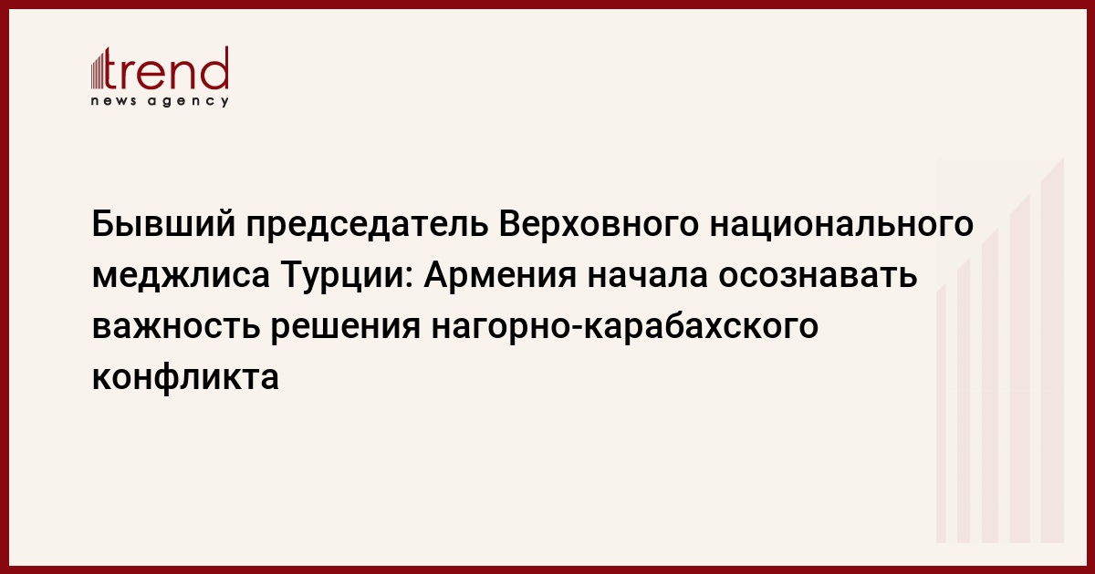 Азербайджан, Баку /корр. Trend И.Ализаде/ Армения начала осознавать важность решения нагорно-карабахского конфликта. Об этом в пятницу заявил бывший председатель Верховного национального меджлиса Турции Хикмет Четин, находящийся с визитом в Азербайджане для участия на международной конференции "Роль СМИ в развитии терпимости и взаимопонимания".