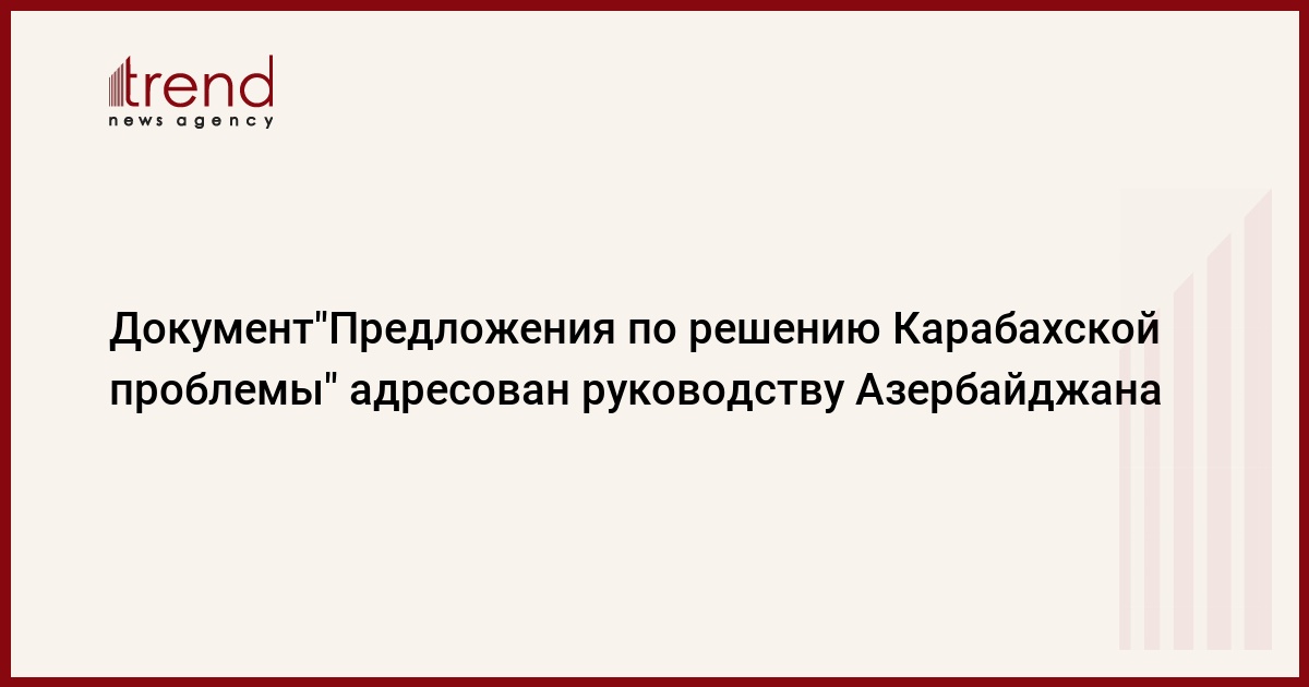Азербайджан, Баку/корр. Trend С.Ильхамгызы/ Рабочая группа Карабахского форума, проведенного при организаторской поддержке Союза во имя демократии, подготовила документ "Предложения по решению Карабахской проблемы". Он адресован президенту Азербайджана Ильхаму Алиеву, спикеру Милли меджлиса Октаю Асадову и президенту Национальной академии наук Махмуду Керимову. Об этом в четверг сообщил сопредседатель Союза во имя демократии Мирмахмуд Миралиоглу.