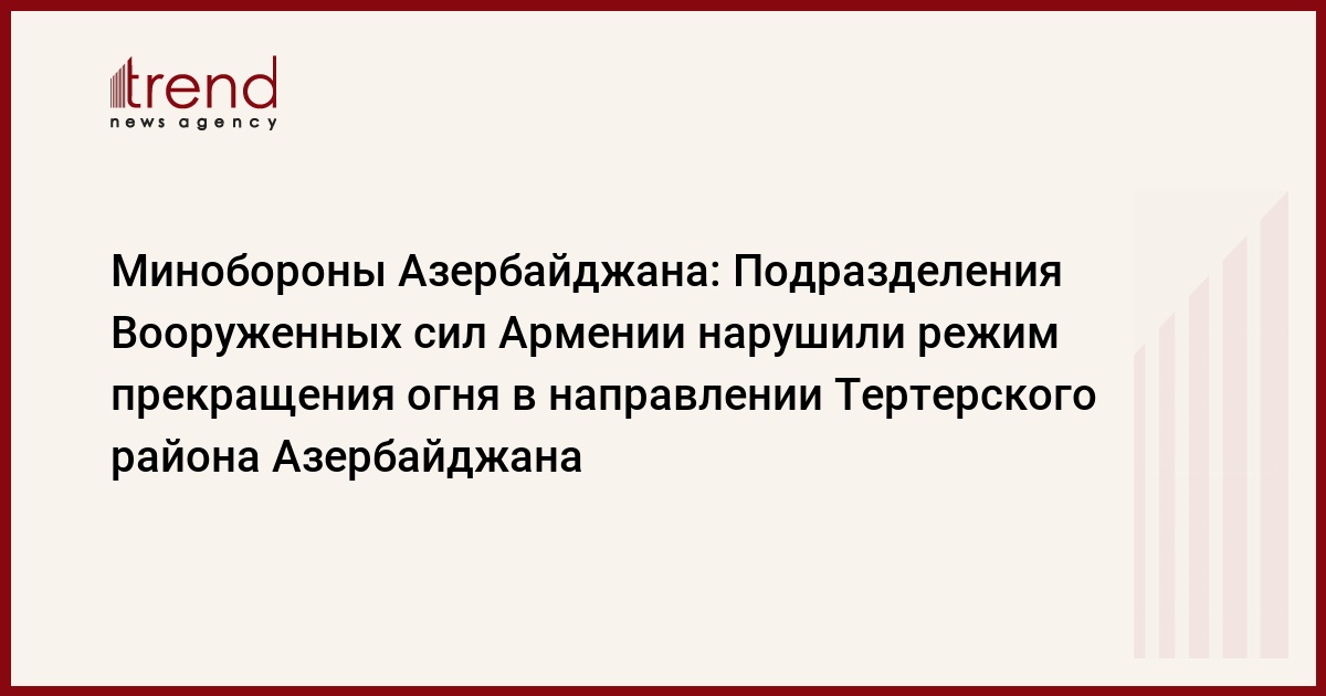 Азербайджан, Баку /корр. Trend К.Зарбалиева/ Подразделения Вооруженных сил Армении 15 августа с 23:10 до 23:50 с постов, дислоцированных в 0,3 километрах от северной части селения Гойарх Тертерского района подвергли автоматному и пулеметному обстрелу позиции Национальной армии Азербайджана, сообщили в четверг в пресс-службе Министерства обороны АР.