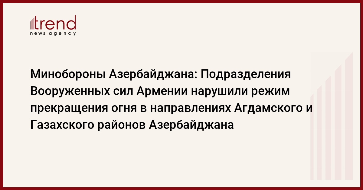 Азербайджан, Баку /корр. Trend К.Зарбалиева/ Подразделения Вооруженных сил Армении нарушили режим прекращения огня в направлениях Агдамского и Газахского районов Азербайджана.