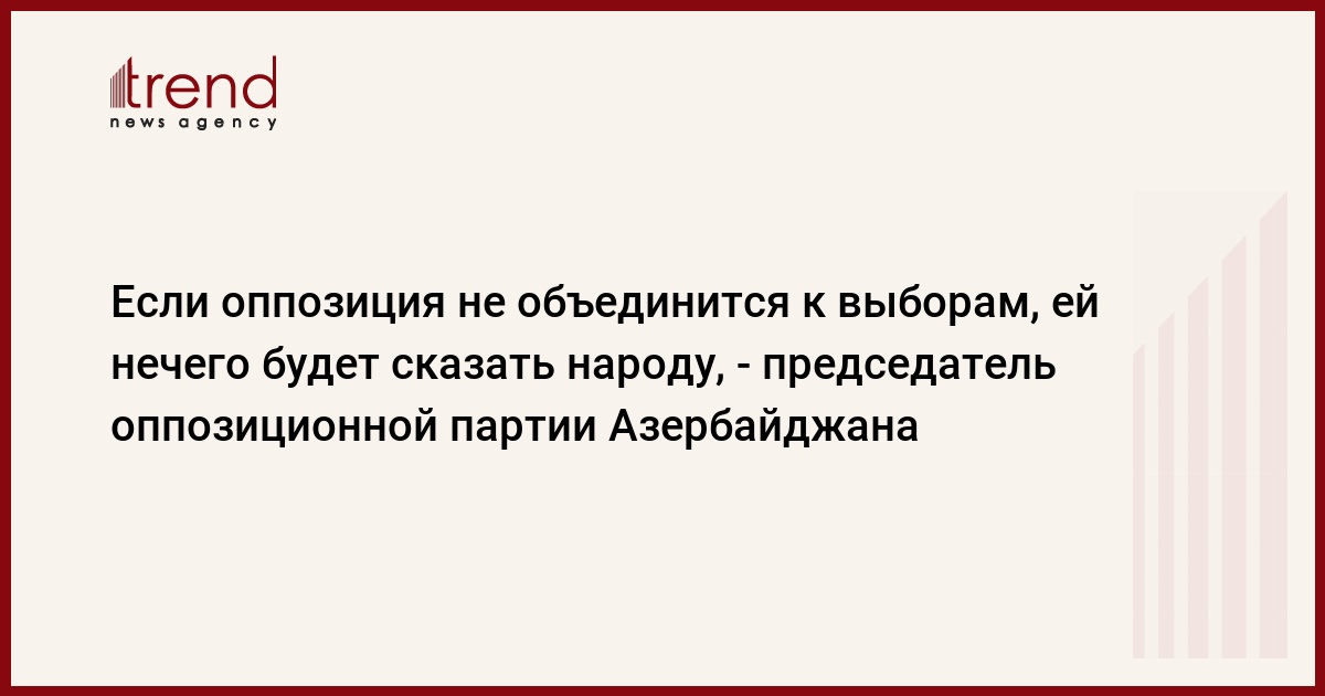 Азербайджан, Баку/корр. Trend C.Ильхамгызы/ Если оппозиция Азербайджана не добьется единства и на предстоящих в следующем году президентских выборах, ей уже нечего будет сказать и обещать народу, заявил Trend в среду председатель Партии национальной независимости Азербайджана (ПННА) Аяз Рустамов.