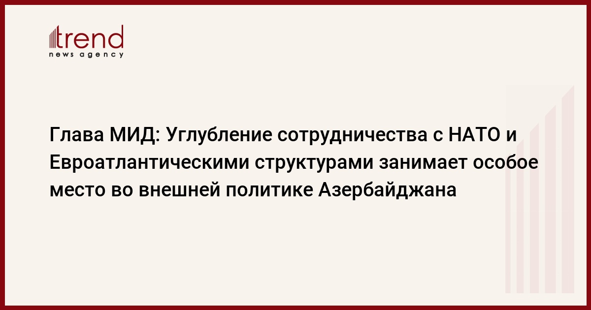 Азербайджан, Баку /корр. Trend И.Ализаде/ Углубление сотрудничества с НАТО и Евроатлантическими структурами занимает особое место во внешней политике Азербайджана, заявил в четверг в Баку министр иностранных дел Азербайджана Эльмар Мамедъяров на встрече с делегацией во главе с председателем подкомитета ПА НАТО по вопросам демократического управления, болгарским депутатом Четином Казаком.