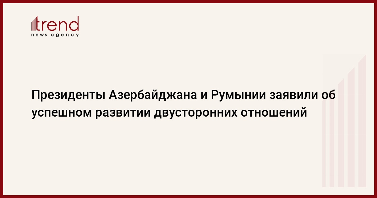 Румыния, Бухарест /корр. Trend Ю.Алиев/ На встрече президентов Азербайджана и Румынии, которая прошла 24 сентября в Бухаресте, было отмечено успешное развитие двусторонних отношений. Об этом по итогам переговоров тет-а-тет президентов Азербайджана и Румынии Ильхама Алиева и Траяна Басеску в понедельник журналистам сообщил пресс-секретарь главы Азербайджана Азер Гасымов.