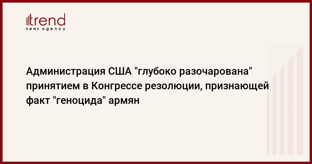 Американская администрация "глубоко разочарована" принятием в комитете по иностранным делам палаты представителей Конгресса США резолюции, признающей факт "геноцида" армян в 1915 году во времена Османской империи. Об этом заявил журналистам в среду заместитель госсекретаря США по политическим делам Николас Бернс. Дипломат выразил надежду, что Турция - "один из самых ценных и важных союзников США" - не станет предпринимать каких-либо ответных действий, передает ИТАР-ТАСС.