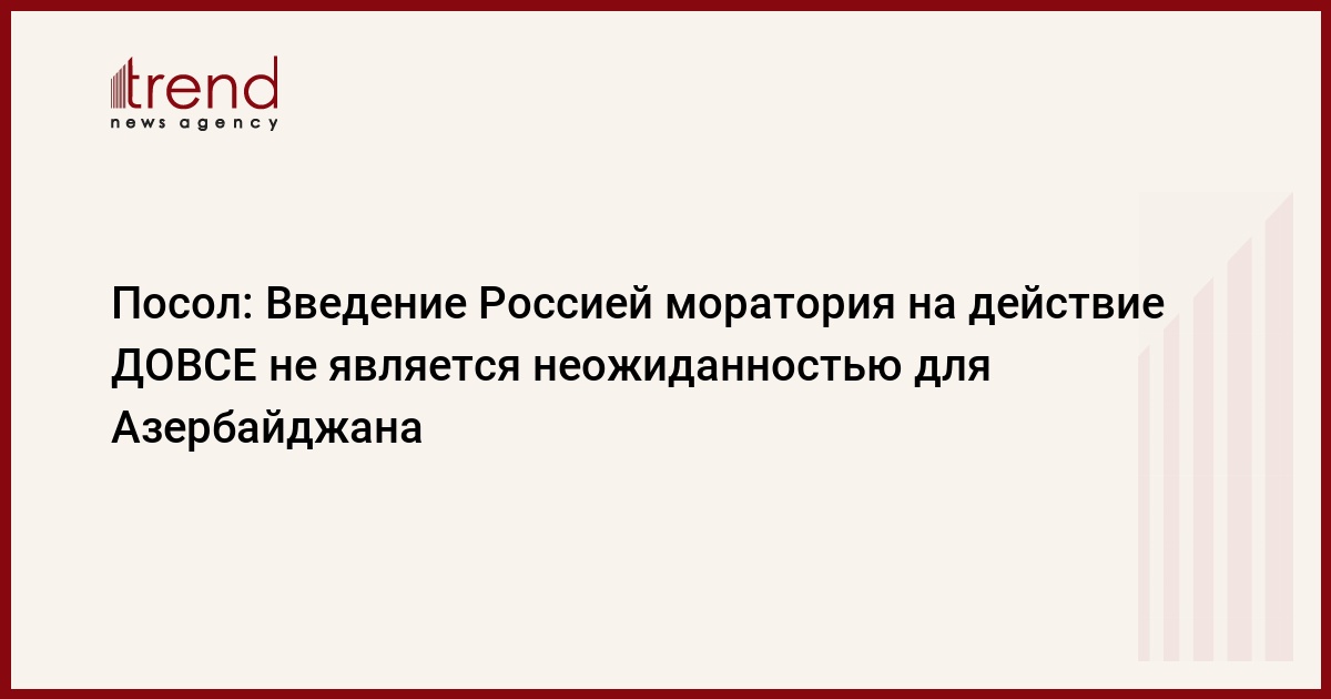 Азербайджан, Баку / корр. Trend Э.Гусейнзаде / Введение Россией моратория на действие Договора об обычных вооружениях в Европе не является неожиданностью для Азербайджана. Так прокомментировал в четверг журналистам посол России в Азербайджане Василий Истратов принятое вчера Государственной Думой России решение.
