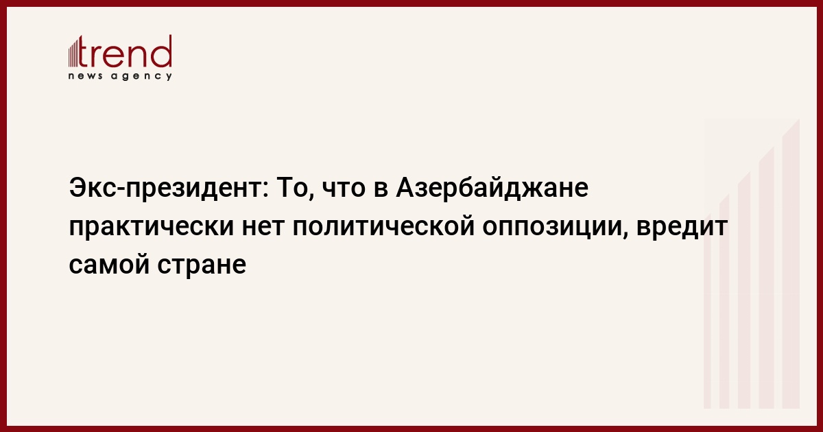 Азербайджан, Баку /корр. Trend Э.Гусейнли/ То, что в Азербайджане практически нет политической оппозиции, вредит самой стране, сказал в пятницу в эксклюзивном интервью Trend экс-президент Аяз Муталлибов. По его словам, демократическое проведение выборов в Азербайджане зависит от наличия оппозиции, способной осуществить общественный контроль.