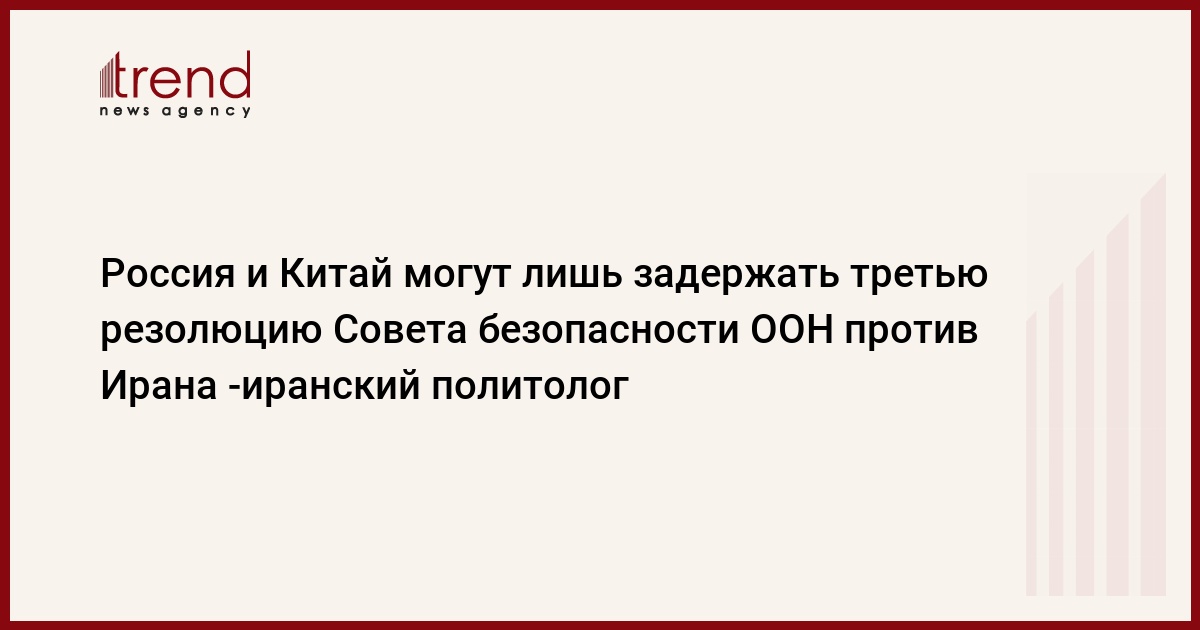 Азербайджан, Баку /корр. Trend Д.Хатыноглу / Выступления России и Китая против применения третьей резолюции Совбеза ООН в отношении Ирана приведут к смягчению санкций. "России и Китай могут лишь затянуть или смягчить принятие третьей резолюции Совета безопасности ООН в отношении Ирана", - сказал иранский политолог Казым Никхах.
