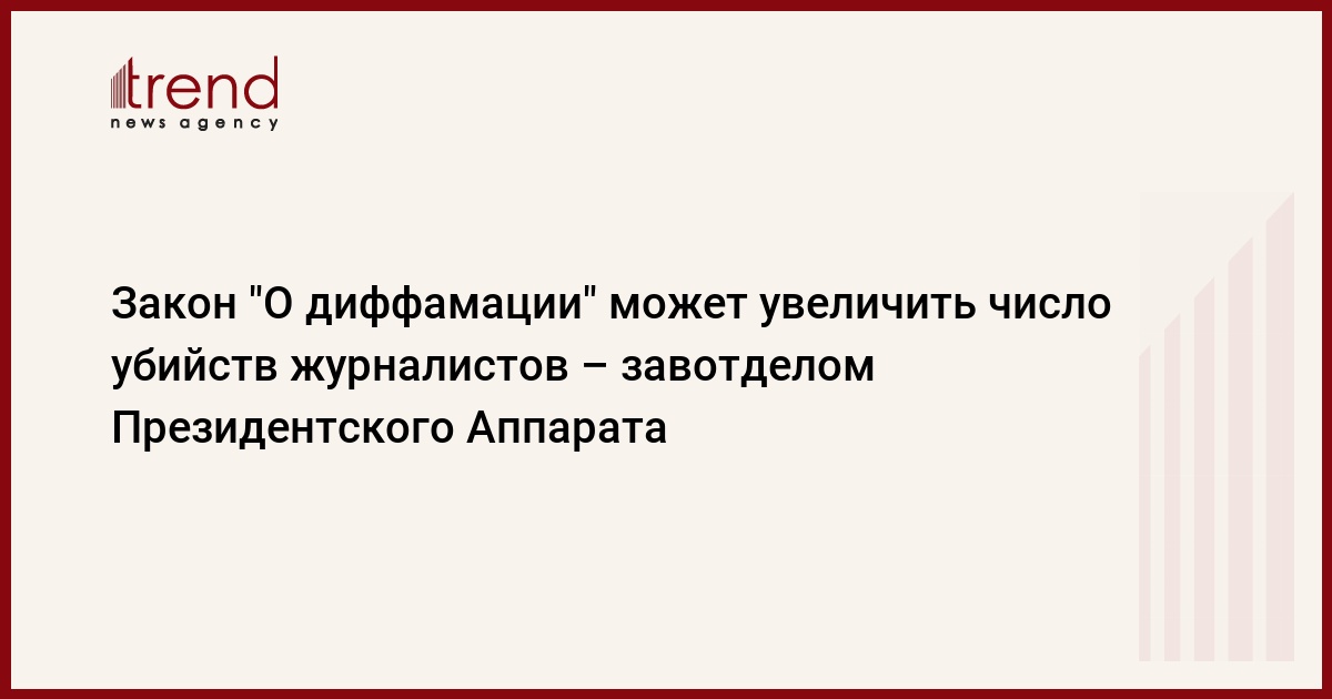 Азербайджан, Баку /корр. Trend И.Ализаде/ Принятие в Азербайджане закона "О диффамации" может в течение года завершиться десятками убийств журналистов, подобных убийству главного редактора журнала "Монитор" Эльмара Гусейнова. Об этом сказал заведующий общественно-политическим отделом Исполнительного аппарата президента Азербайджана Али Гасанов на международной конференции "Свобода слова и прессы в Азербайджане в контексте местных и международных законов", начавшей работу в понедельник в Баку.