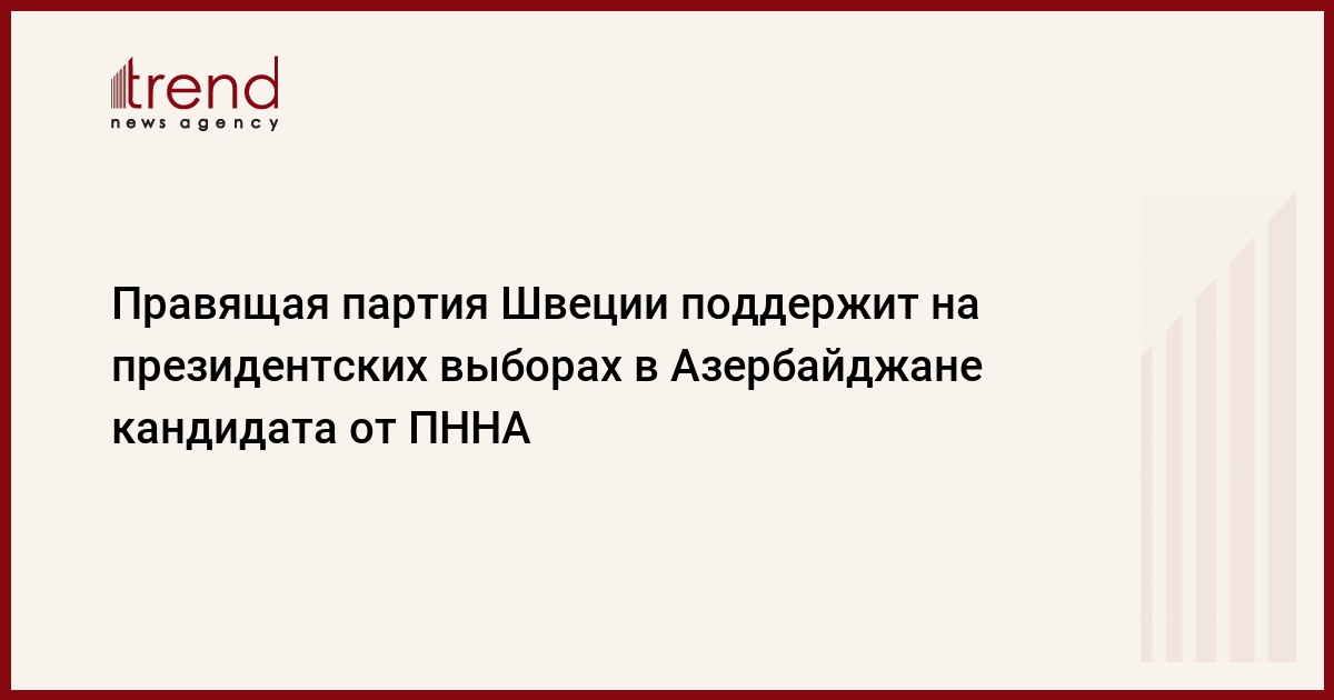 Азербайджан, Баку /корр. Trend С.Ильхамгызы/ Правящая партия Швеции "Модерат" поддержит на президентских выборах в 2008 году кандидата от партии Национальной независимости Азербайджана (ПННА). Об этом в четверг Trend сообщил председатель ПННА Аяз Рустамов.