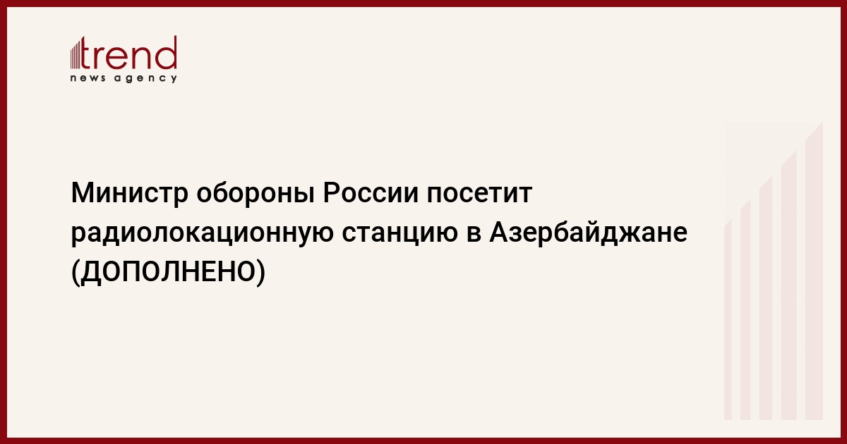 Азербайджан, Баку /корр. Trend Э.Гусейнли/ В ходе визита 27-28 ноября в Азербайджан министр обороны России Анатолий Сердюков посетит радиолокационную станцию в Габале, сообщили в понедельник в посольстве России в Азербайджане.