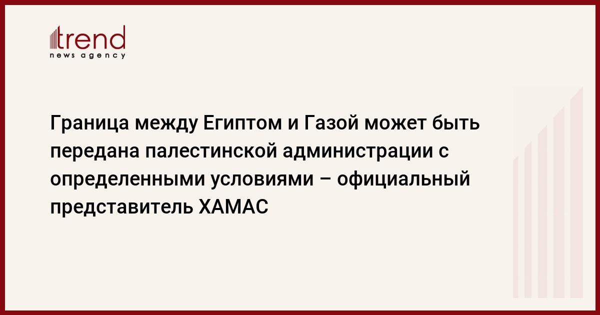 "Пропускной пункт "Рафах" может быть передан администрации Аббаса в случае, если они не будут сотрудничать с Израилем", - сказал Trend официальный представитель ХАМАС Мушир аль Масри.