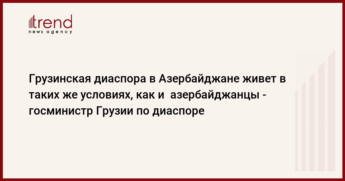 Грузия, Тбилиси, 4 февраля /корр. Trend Н.Кирцхалиа/ Грузинская диаспора в Азербайджане живет в таких же условиях, как и азербайджанцы. "Грузины, проживающие в Азербайджане, ничем не отличаются от граждан Азербайджана, и живут в таких же условиях", - сказал в понедельник Trend государственный министр Грузии по диаспоре Юлон Гагошидзе.