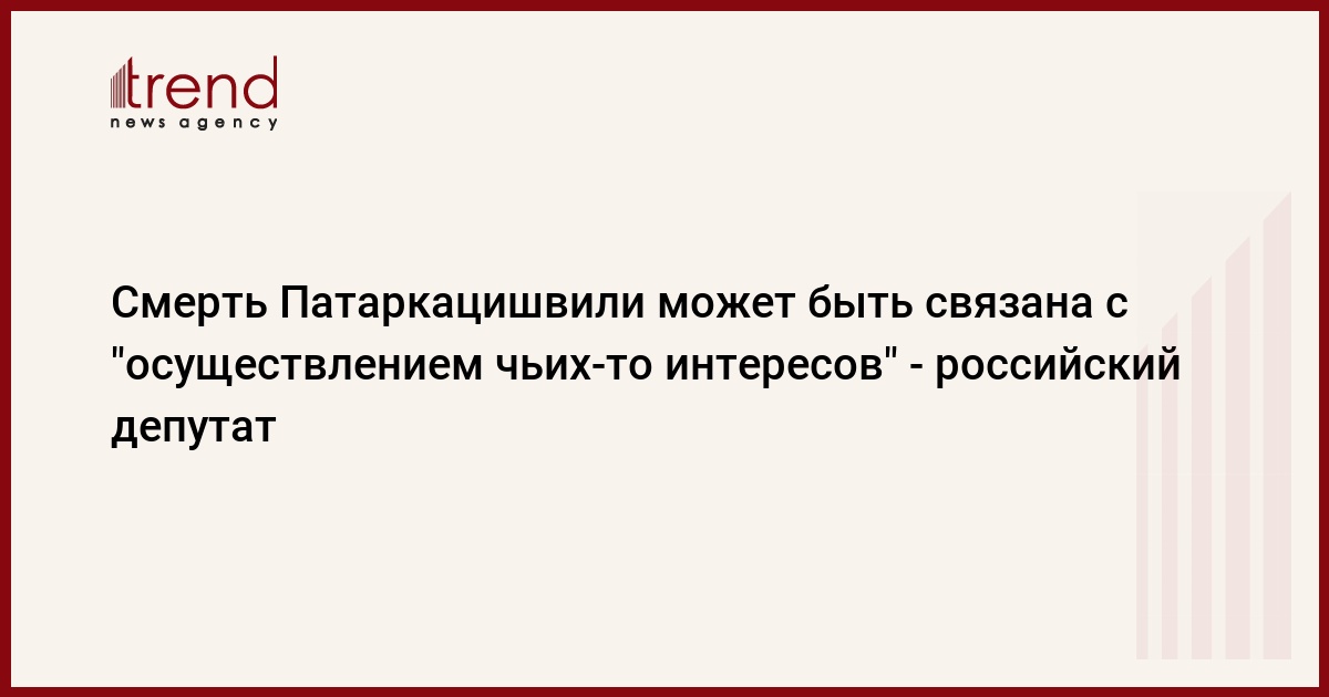 Россия, Москва, 13 февраля /корр. Trend Р.Агаев/ Смерть известного грузинского оппозиционного лидера Бадри Патаркацишвили может быть связана с "осуществлением чьих-то интересов", считает депутат Госдумы РФ Владимир Колесников.