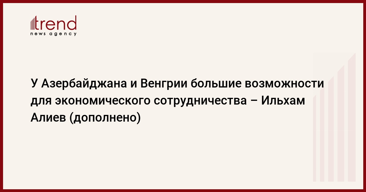 У азербайджано-венгерских экономических связей есть прекрасные перспективы, сказал президент Алиев и добавил, что начавшееся сотрудничество в энергетической сфере обнадеживает. Ильхам Алиев сообщил, что освоение природных ресурсов Азербайджана направлено на обеспечение мира и стабильности в регионе.