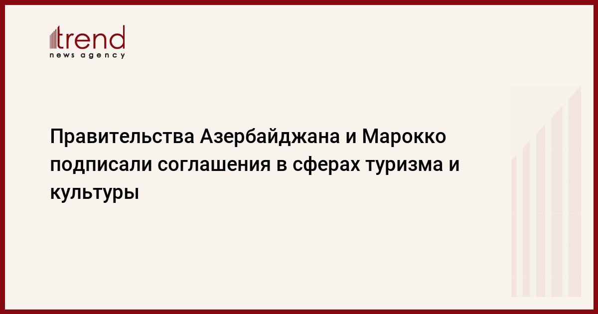 Документ подписали министр культуры и туризма Азербайджана Абульфаз Гараев, министр культуры Марокко Турия Жибран и генеральный секретарь министерства туризма и прикладного искусства страны Хинд Шиллишле.