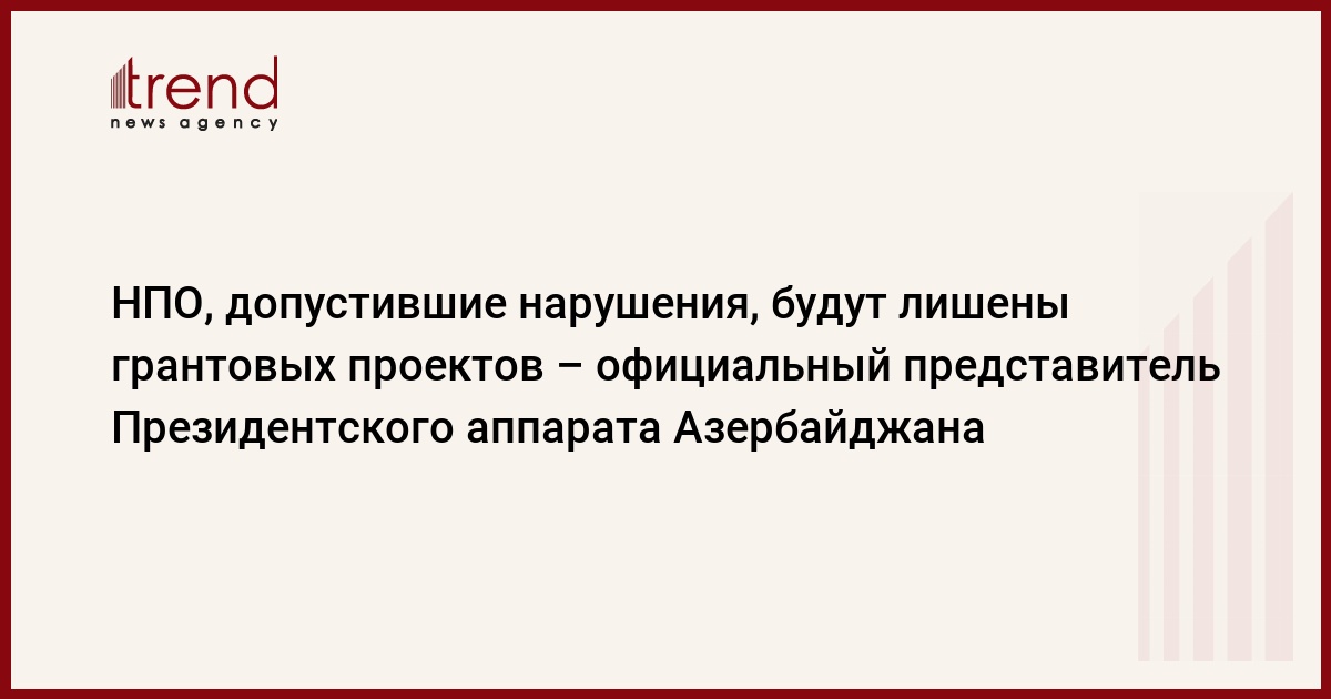Азербайджан, Баку, 12 марта /корр. Trend С.Ильхамгызы/ Неправительственные организации, избранные в Совет государственной поддержки НПО, допустившие правонарушения, противоречащие Положению Совета, во время исполнения проектов, будут лишены получения грантовых проектов на последующий период. Об этом в среду Trend сообщил заместитель заведующего общественно-политическим отделом Президентского аппарата Арастун Мехтиев.