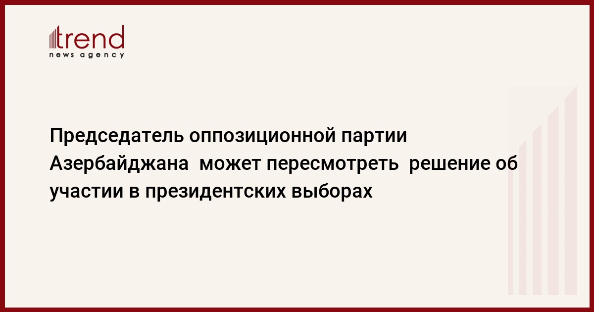 Азербайджан, Баку, 19 марта /корр. Trend С.Ильхамгызы/ Председатель оппозиционной партии Великого созидания Фазиль Газанфароглу может изменить решение об участии в президентских выборах.