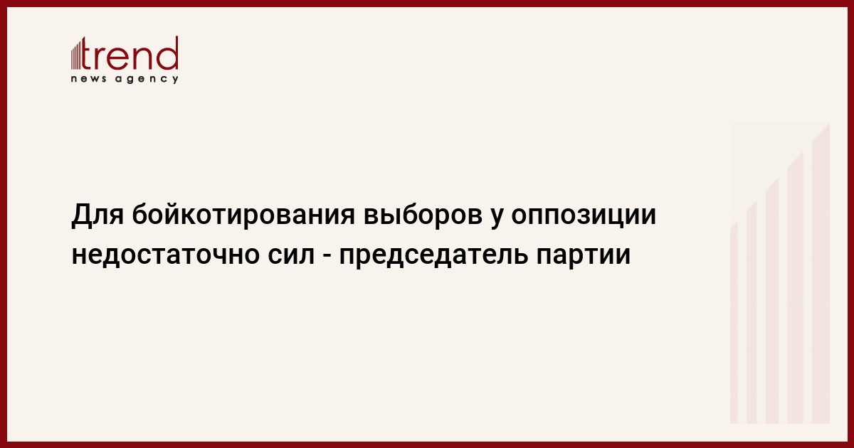 Азербайджан, Баку, 31 марта /корр. Trend Г.Джабиев/ У оппозиции недостаточно сил, чтобы бойкотировать президентские выборы, считают в партии Открытое Общество (ПОО), лидером которой является экс-спикер, проживающий в эмиграции в США, Расул Гулиев.