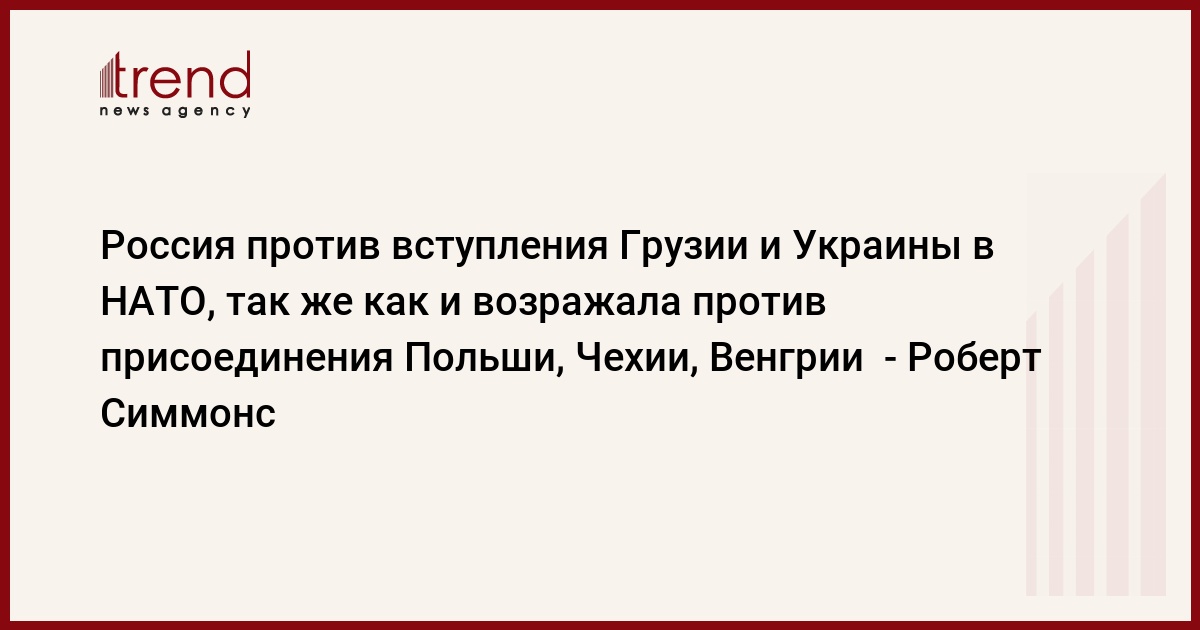 Казахстан, Астана, 11 апреля / корр. Trend К.Конырова/ Грузия и Украина могут стать членами НАТО, несмотря на возражения России, ответил специальный представитель НАТО по Средней Азии и Кавказу Роберт Симмонс в Астане, отвечая на соответствующий вопрос корреспондента Trend . "Как известно, при первой волне расширения НАТО в Восточной Европе Россия возражала против вступления Польши, Чехии, Венгрии и против расширения НАТО на Балканах. Возражала, ну и что? Эти страны стали членами альянса. То же самое будет с Грузией и Украиной", - сказал Роберт Симмонс.Он отметил, что членство в НАТО зависит от решения стран - участниц альянса, а не от отдельно взятой страны вне НАТО. На вопрос о том, как же НАТО намерено будет регулировать свои отношения с Россией после вступления Грузии и Украины в состав альянса, Симмонс ответил: "Отношения НАТО с Россией имеет и взлеты и падения. И у нас есть расхождения по целому ряду вопросов, не только по расширению, но и например, по ПРО, но зато жив совет "Россия - НАТО", где мы досконально каждый месяц обсуждаем все наши проблемы и динамично развиваемся".