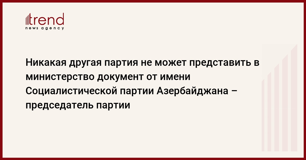 Азербайджан, Баку, 29 апреля /корр. Trend С.Ильхамгызы/ Председатель Социалистической партии Азербайджана Эльшан Гасанов считает, что документы об учреждении другой партии с этим названием не могут быть представлены в министерство юстиции.