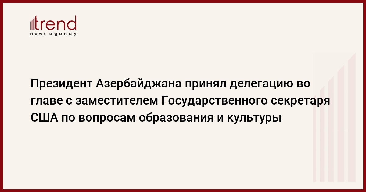Азербайджан, Баку, 20 июня / Trend / Президент Азербайджанской Республики Ильхам Алиев в пятницу принял делегацию во главе с заместителем Государственного секретаря США по вопросам образования и культуры Голи Амери.