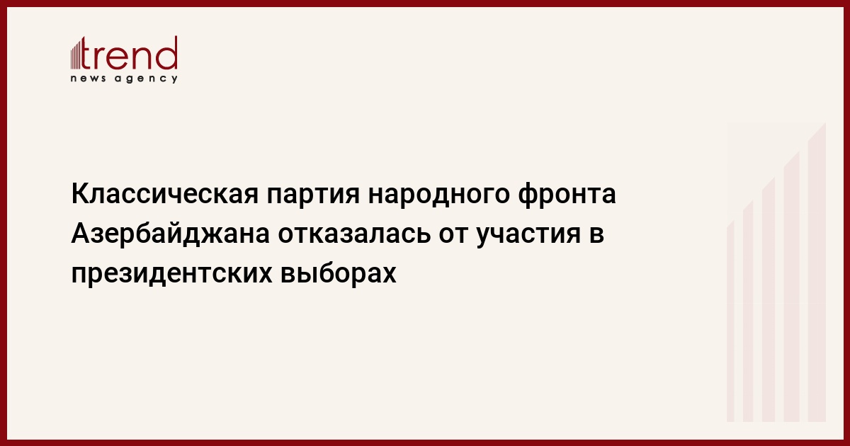 Азербайджан, Баку, 2 августа / корр. Trend , Дж.Бабаева/ Верховный совет Классической партии народного Фронта Азербайджана в субботу приняла решение не участвовать в президентских выборах, сообщил в субботу Trend председатель Верховного совета партии Залимхан Мамедли.