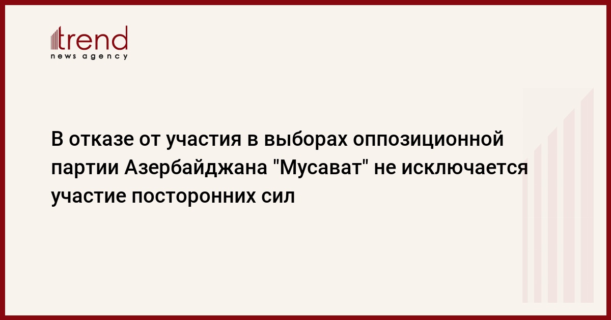 Азербайджан, Баку, 4 августа /корр. Trend Э.Бабаев/ Оппозиционная партия Азербайджана "Мусават" заявляет, что в ее отказе от участия в выборах играли роль посторонние силы. "В "Мусават" большинство было за участие в выборах, и решение партии об участии в выборах оставалось в силе. Изменение ситуации было чем-то похоже на секретную операцию, и возникают вопросы - что произошло за кулисами, кто их уверил, что не следует участвовать в выборах", - сказал Trend в понедельник член партии "Мусават", главный редактор газеты "Ени Мусават" Рауф Арифоглу.