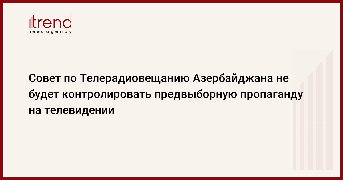 Азербайджан, Баку, 8 августа /корр. Trend Э.Бабаев/ Национальный Совет по Телерадиовещанию (НСТР) Азербайджана не будет следить за соответствием закону предвыборных агиткампаний кандидатов в президенты на телевидении.