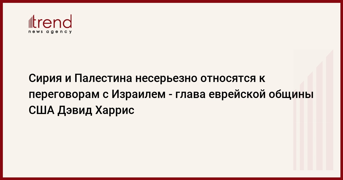 "Палестинская сторона во главе с Махмуд Аббасом не относится серьезно к перемирию, в то время как Израиль делает многое для скорейшего урегулирования проблемы", - сказал Trend Харрис в четверг во время визита в Азербайджан.