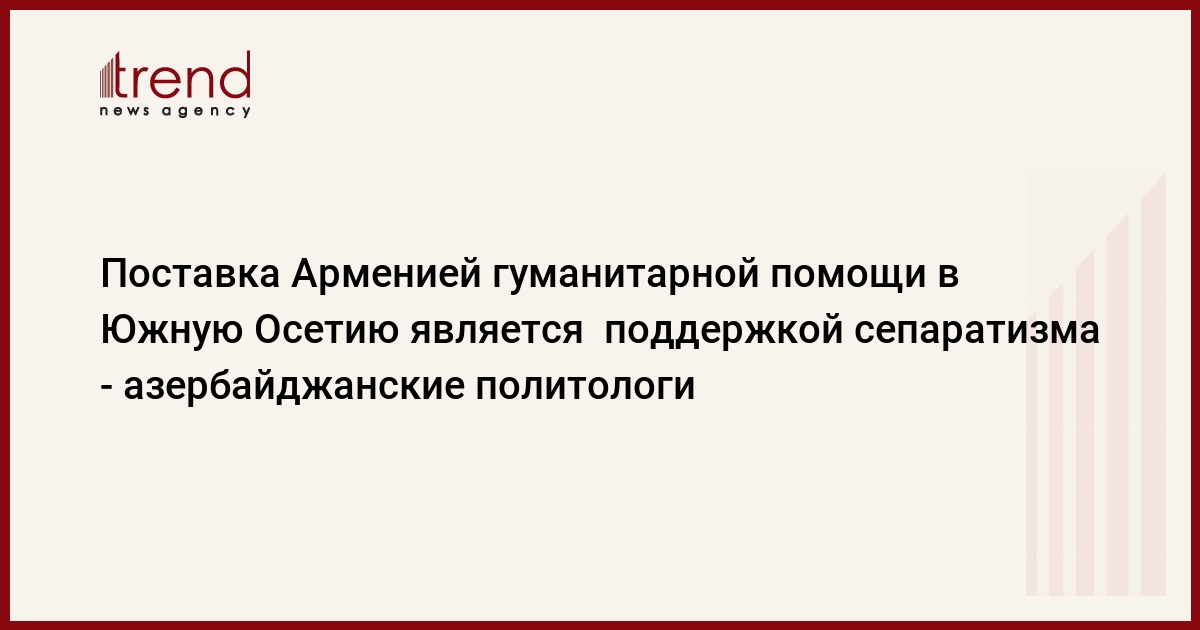 Азербайджан, Баку, 14 августа /корр. Trend И.Ализаде/ Азербайджанские политологи считают, что поставка Арменией гуманитарной помощи в Южную Осетию связано с поддержкой сепаратизма и зависимостью официального Еревана от России. "У Армении нет возможности осуществлять независимую политику", - сказал Trend политолог Расим Мусабеков.