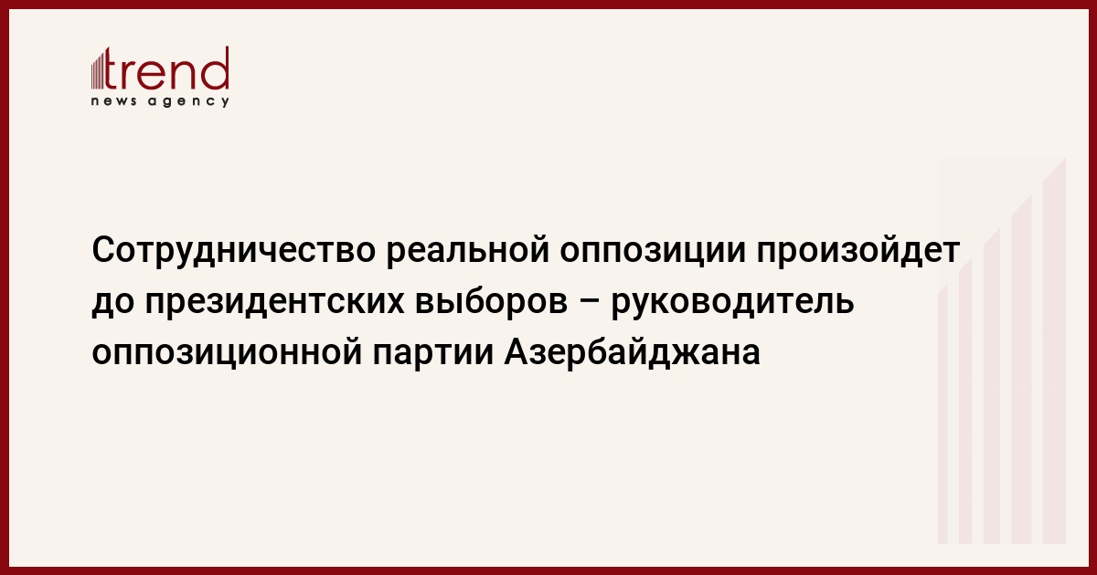 "Сотрудничество реальной оппозиции произойдет до президентских выборов и продолжится после них. Это сотрудничество будет в форме коалиции или же в другой, все это зависит от хода обсуждений", - сказал в пятницу Trend башган партии "Мусават" Иса Гамбар.