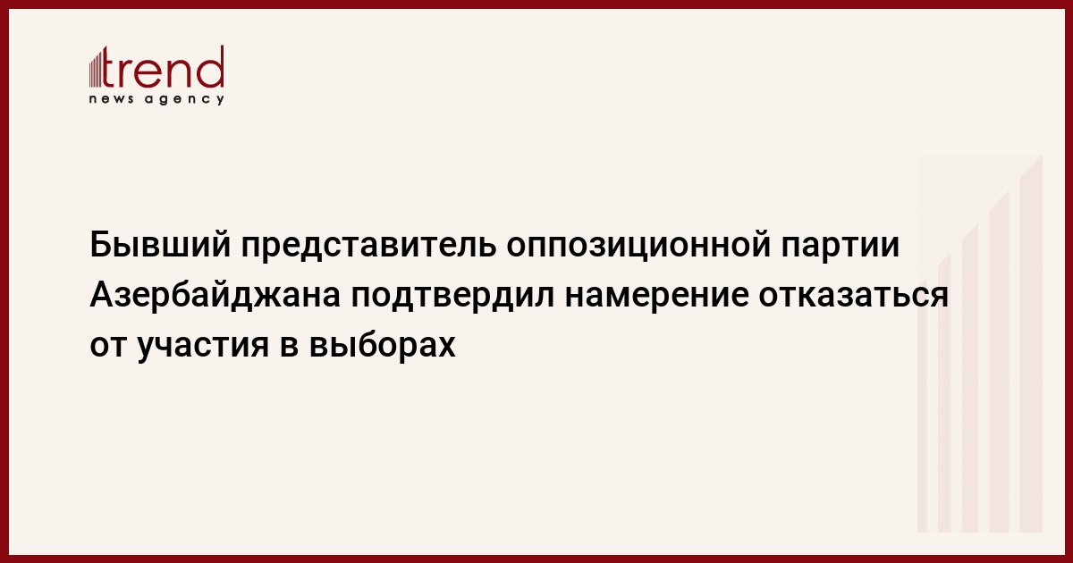 Алибейли отметил, что в ближайшие дни раскроет свое окончательное мнение относительно этого вопроса. Он не прокомментировал причину отзыва своей кандидатуры. "Сейчас, я могу сказать только, что пришел к этому намерению по личным причинам", - добавил Алибейли.