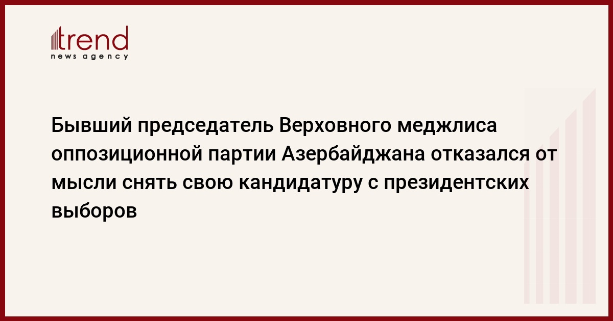 Азербайджан, Баку, 20 августа /корр. Trend Э.Бабаев/ Бывший председатель Верховного меджлиса Партии Народного фронта Азербайджана (ПНФА) Гуламгусейн Алибейли не снимет свою кандидатуру с президентских выборов на данном этапе.