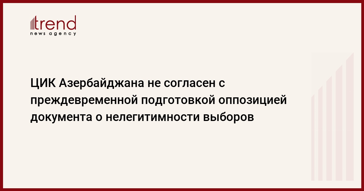 Азербайджан, Баку, 21 августа /корр. Trend Э.Бабаев/ Центральная избирательная комиссия Азербайджана считает неправильным в настоящее время подготовку документа о нелегитимности выборов оппозиционными партиями, не участвующими в процессе.