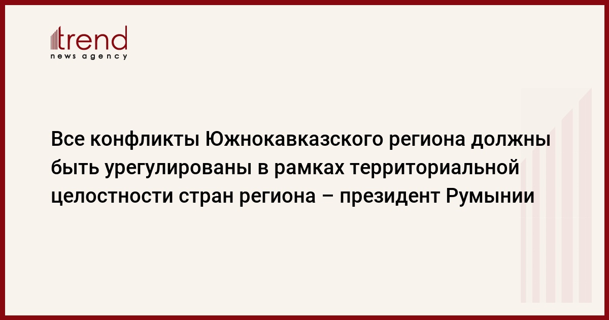 Азербайджан, Баку, 21 августа /корр. Trend Дж.Бабаева/ Все конфликты Южнокавказского региона должны быть урегулированы в рамках территориальной целостности стран региона, сказал президент Румынии Траян Бэсеску во время в расширенной встречи с президентом Азербайджана Ильхамом Алиевым в Баку.