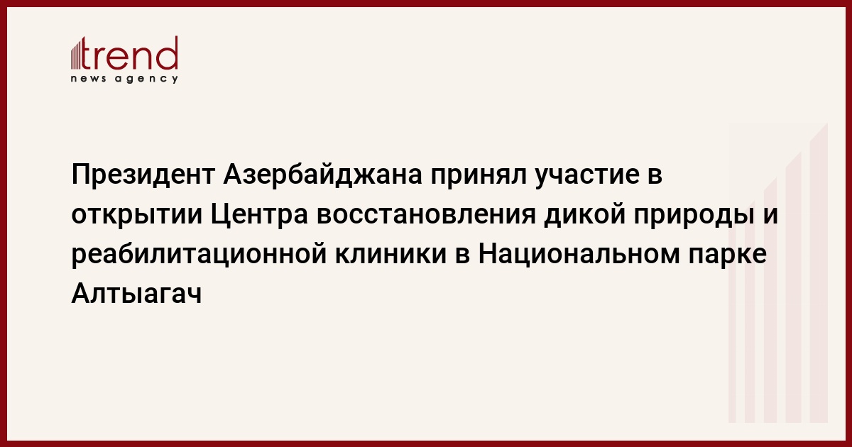 Азербайджан, Баку, 22 августа / Trend / В пятницу президент Азербайджана Ильхам Алиев принял участие в открытии Центра восстановления дикой природы и реабилитационной клиники в Национальном парке Алтыагач.