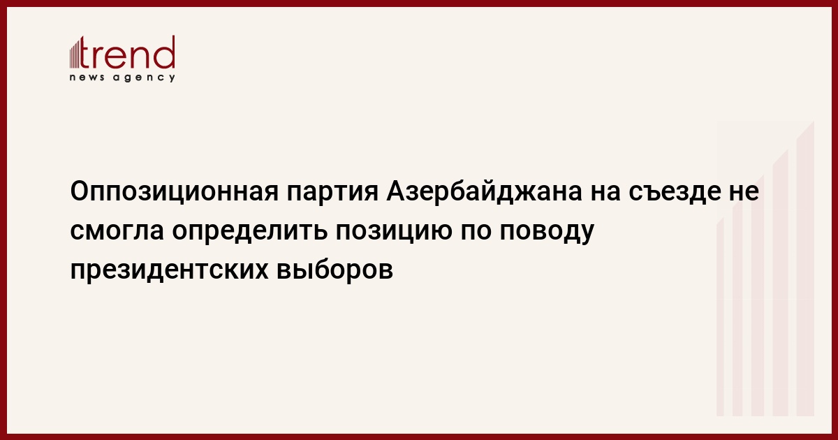 Азербайджан, Баку, 24 августа /корр. Trend Дж. Бабаева/ Оппозиционная Национально-Демократическая партия Азербайджана (НДПА) на IV внеочередном съезде, проходившем в воскресенье, не смогла определить позицию по поводу президентских выборов, которые пройдут 15 октября. "НДПА не может участвовать в выборах со своим кандидатом, так как партия не имеет госрегистрацию. До президентских выборов состоится заседание Политического совета НДПА, на котором партия определит позицию по поводу выборов ї не участие или поддержка оппозиционного кандидата на выборах", сообщил ї Trend ї в воскресенье председатель НДПА Туфан Керимли.