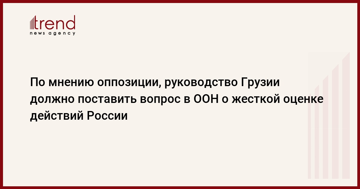 Грузия, Тбилиси, 25 августа /корр. Trend Н.Кирцхалиа/ По заявлению лидера "Новых правых" Давида Гамкрелидзе, руководство Грузии должно поставить вопрос в Организации Объединенных Наций о жесткой оценке действий России.